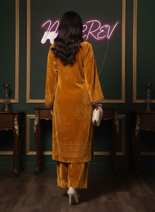 Jaune French Velvet 2 Pcs Dress with Palachi work