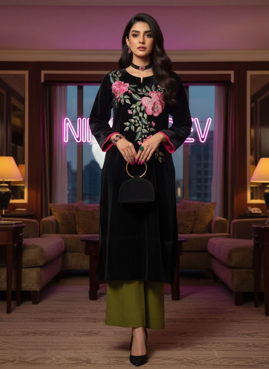 Pakeeza French Velvet Ready to Wear 2 pcs Kaftan with Palachi work