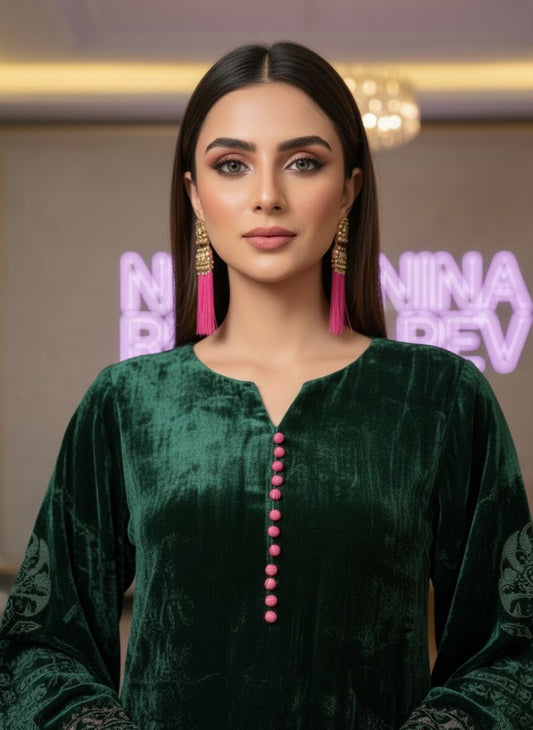 Shahkar Green Velvet Ready to Wear 3 Pcs Collection with Velvet Shawl