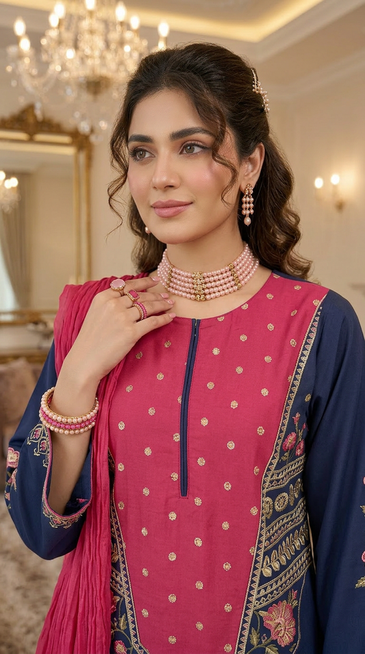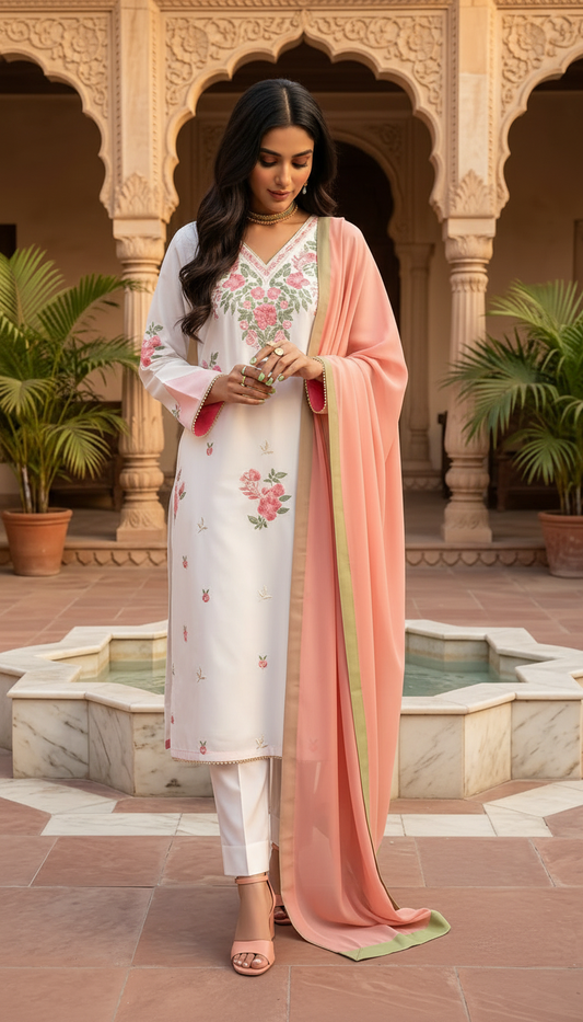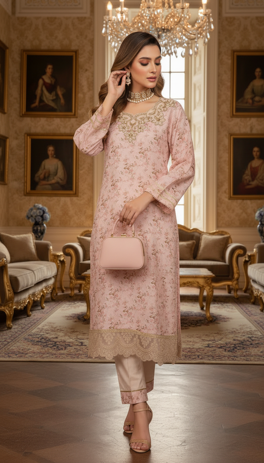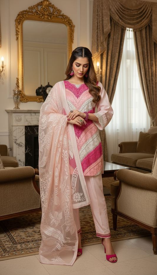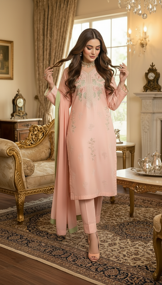 Blush Rose Ready to Wear 3 Pcs Embroidered Dress