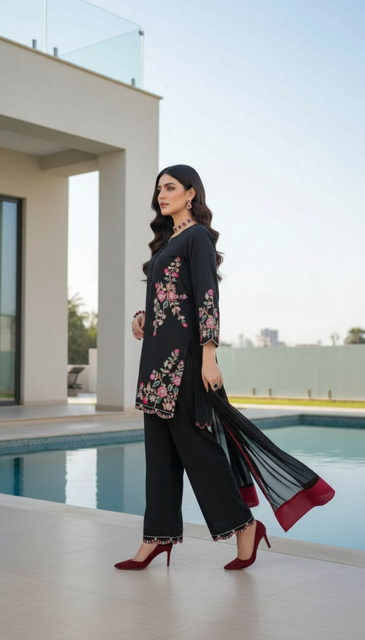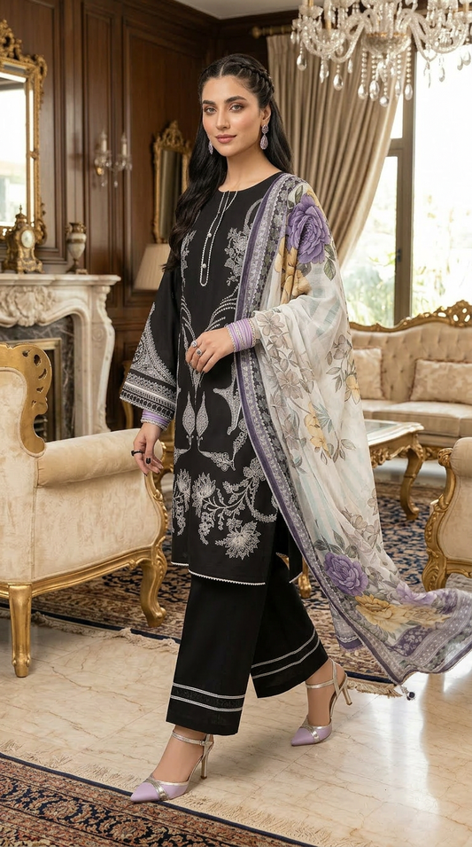 Ada Black Ready to Wear 3 Pcs Embroidered Dress