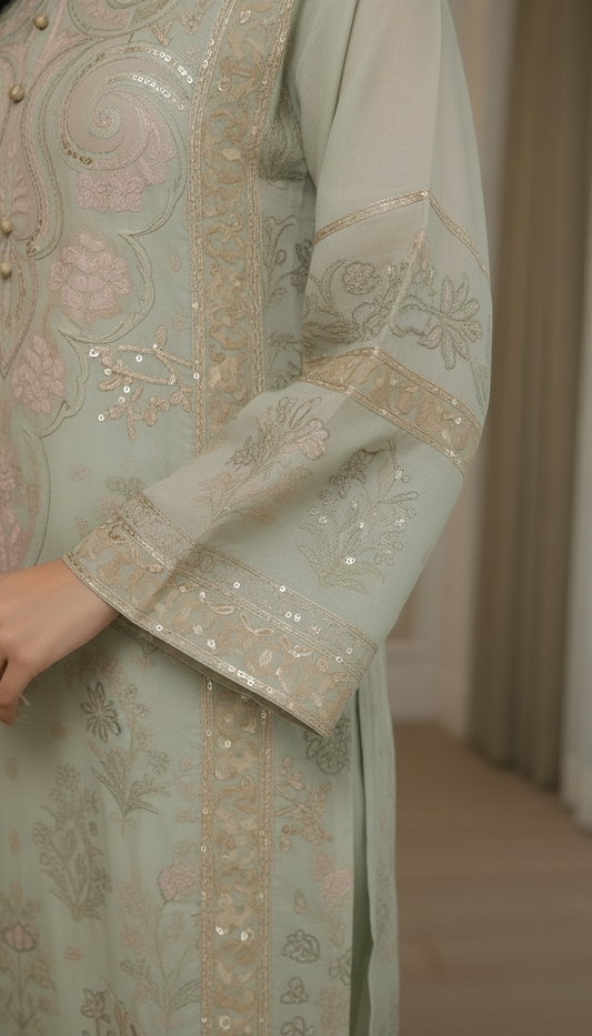 Natalia Green Velvet 2 Pcs Embroidered Dress