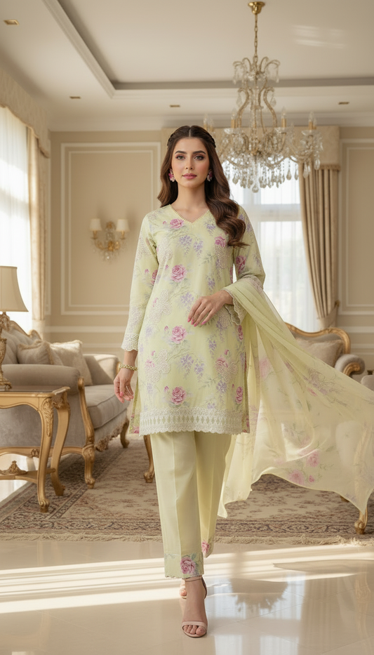 Suroor Chikankari Embroidered Ready to Wear 3 Pcs Dress