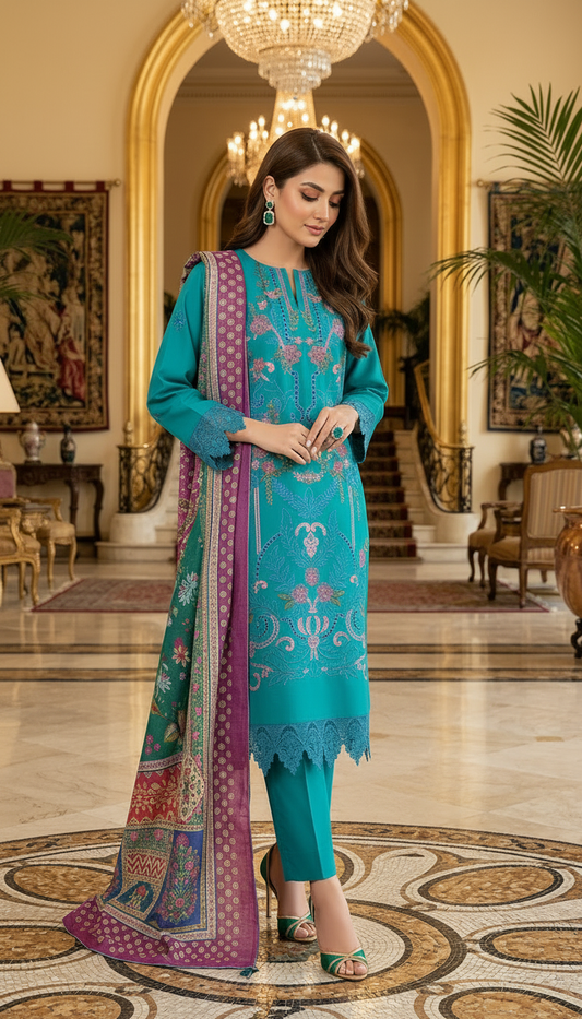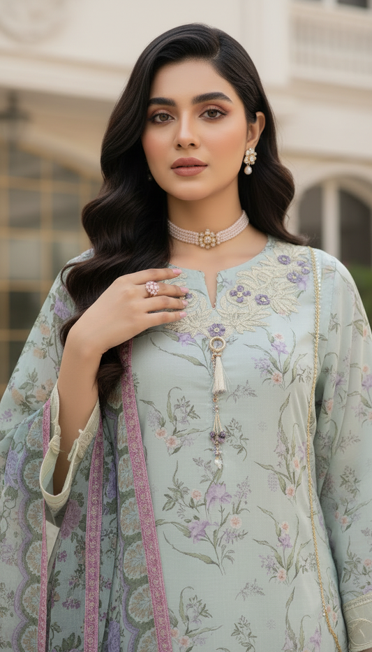 Lara mint Ready to Wear 3 Pcs Embroidered Dress