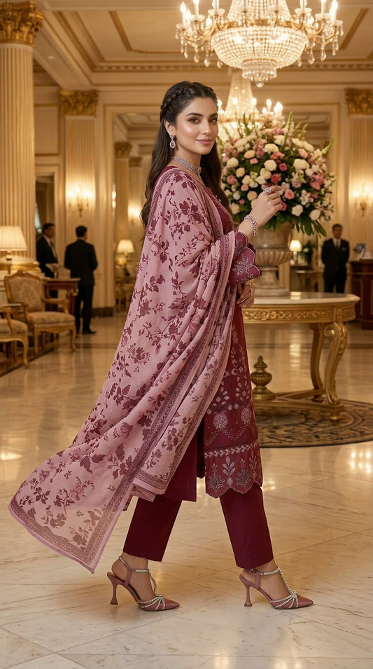 Kash pink Embroidered Ready to Wear 3 Pcs Dress with Chiffon dopatta
