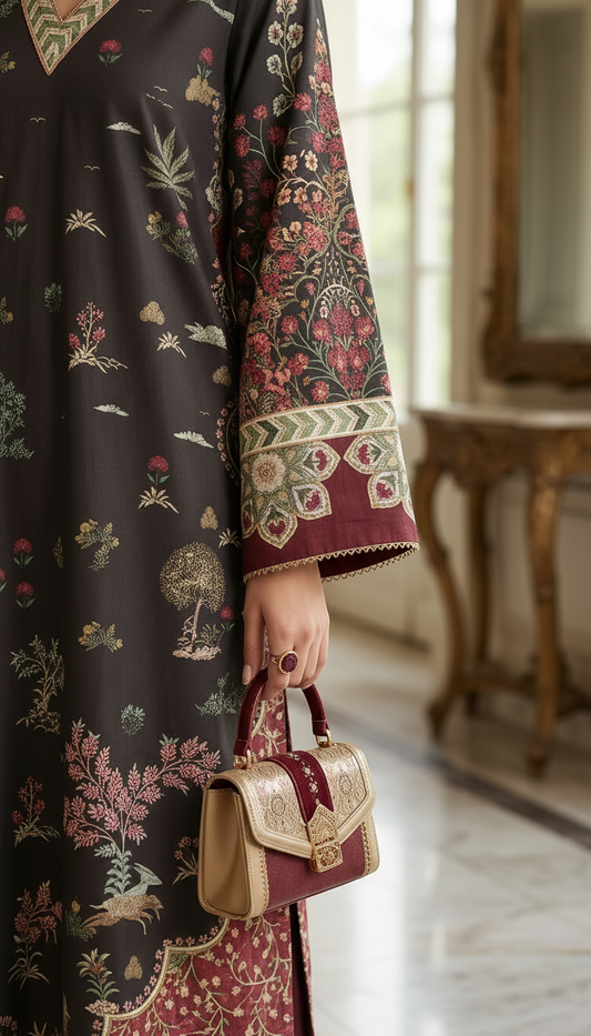 Shab Black Fully embroidered 3 pcs Dress