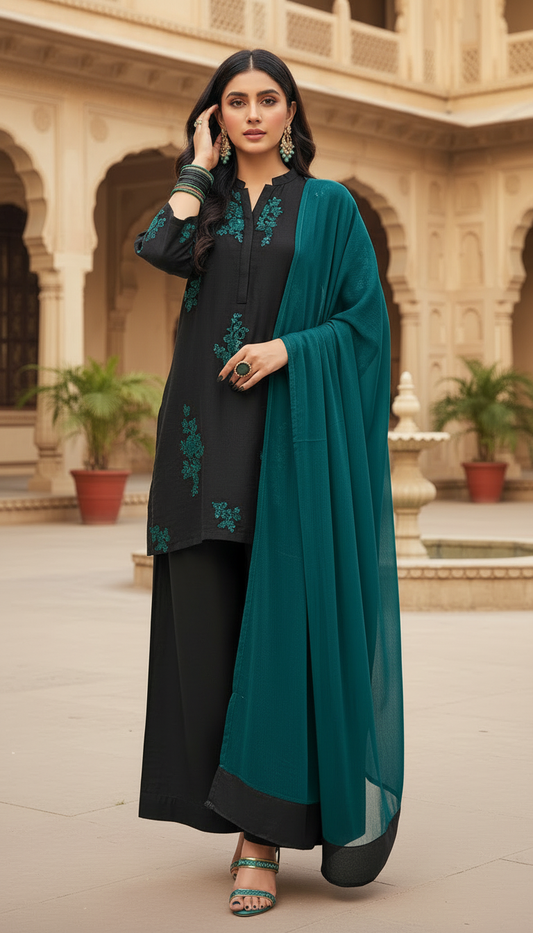 Esha Black Ready to Wear 3 Pcs Dress with Chiffon dopatta