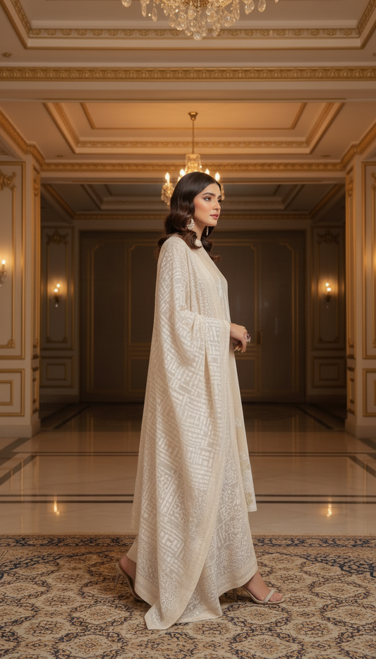 Serena Pearl French Velvet Ready to Wear 3 Pcs Dress with Velvet Shawl