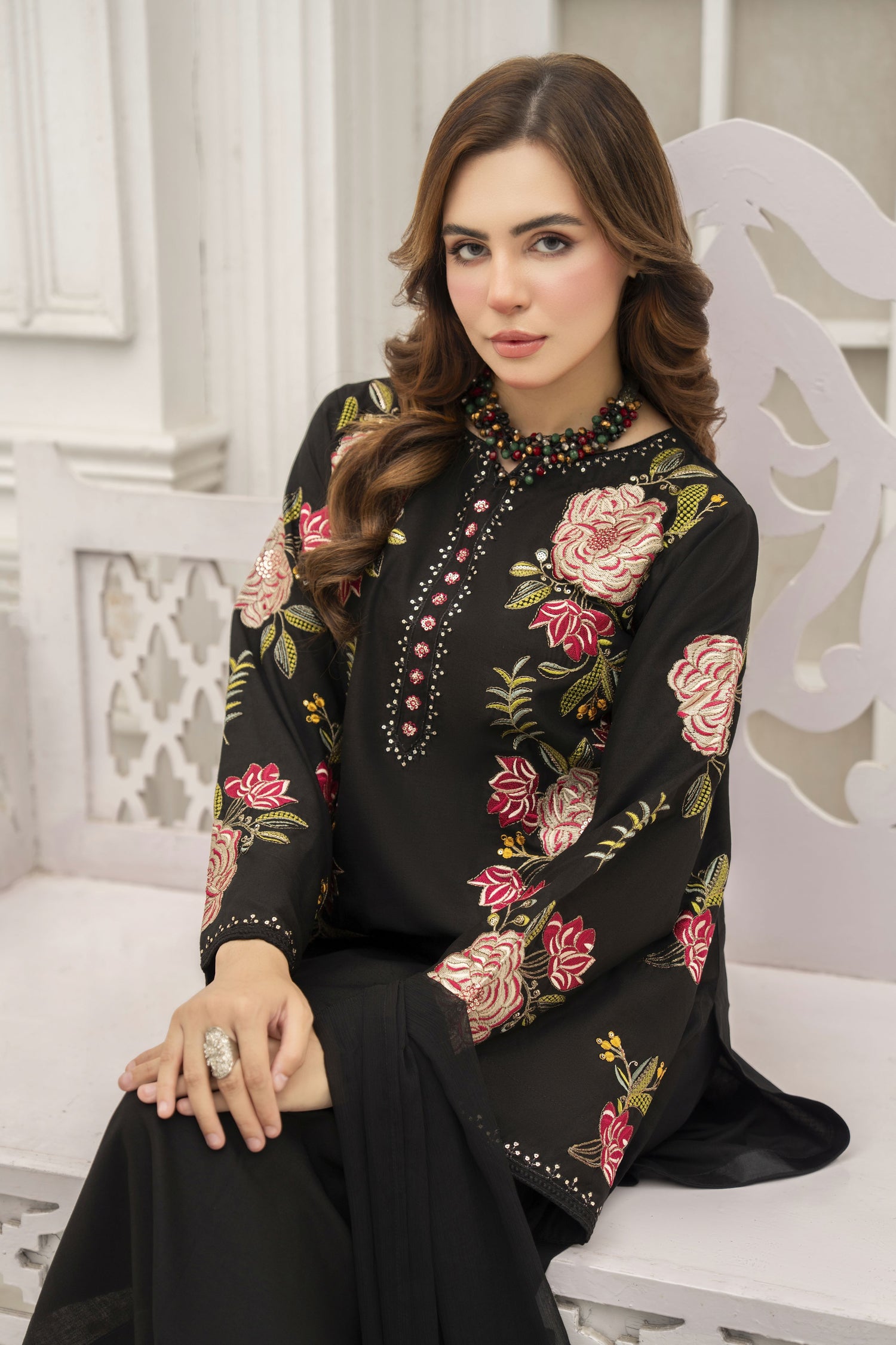 Marvi Black Velvet Ready to Wear 3 Pcs Embroidered Dress