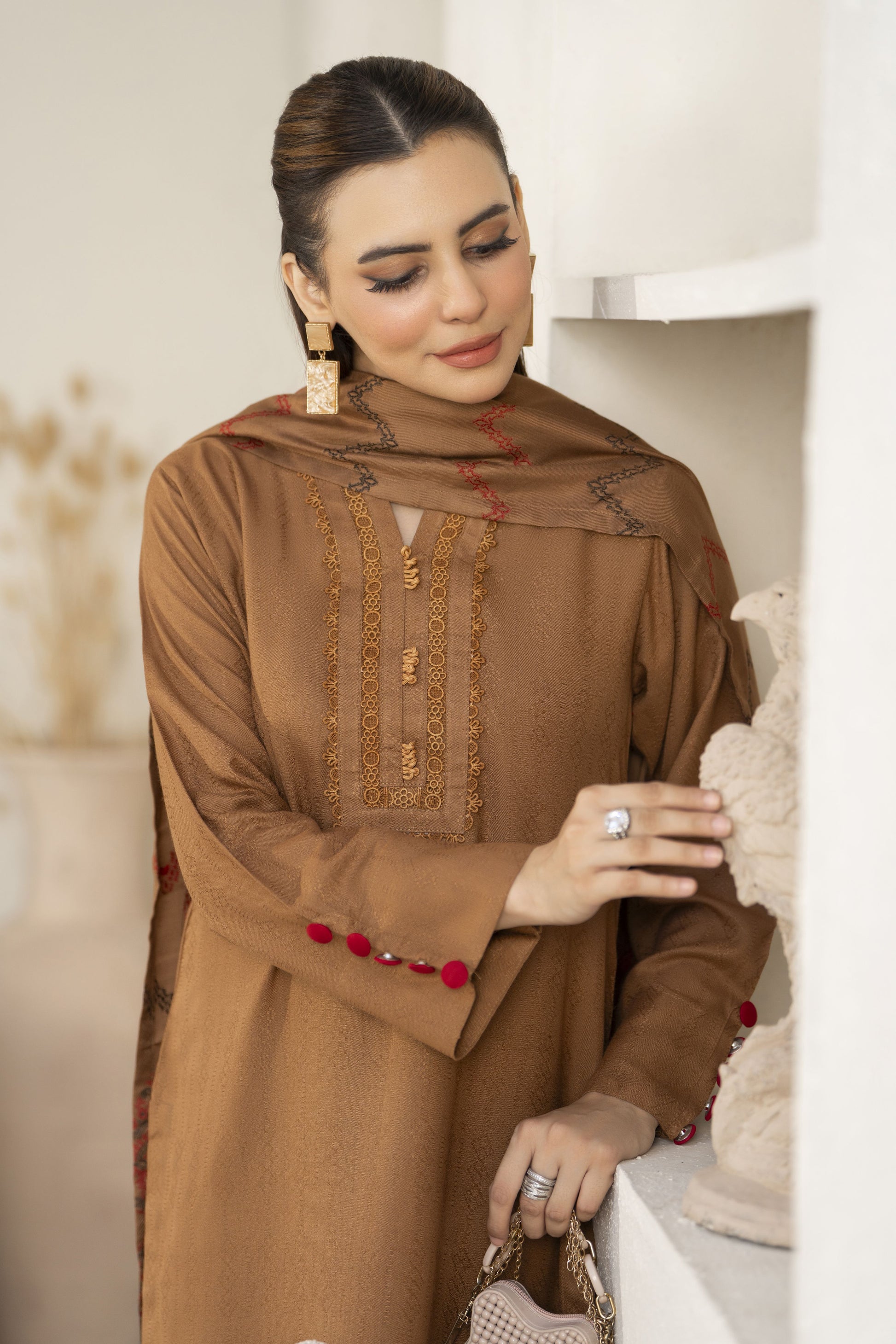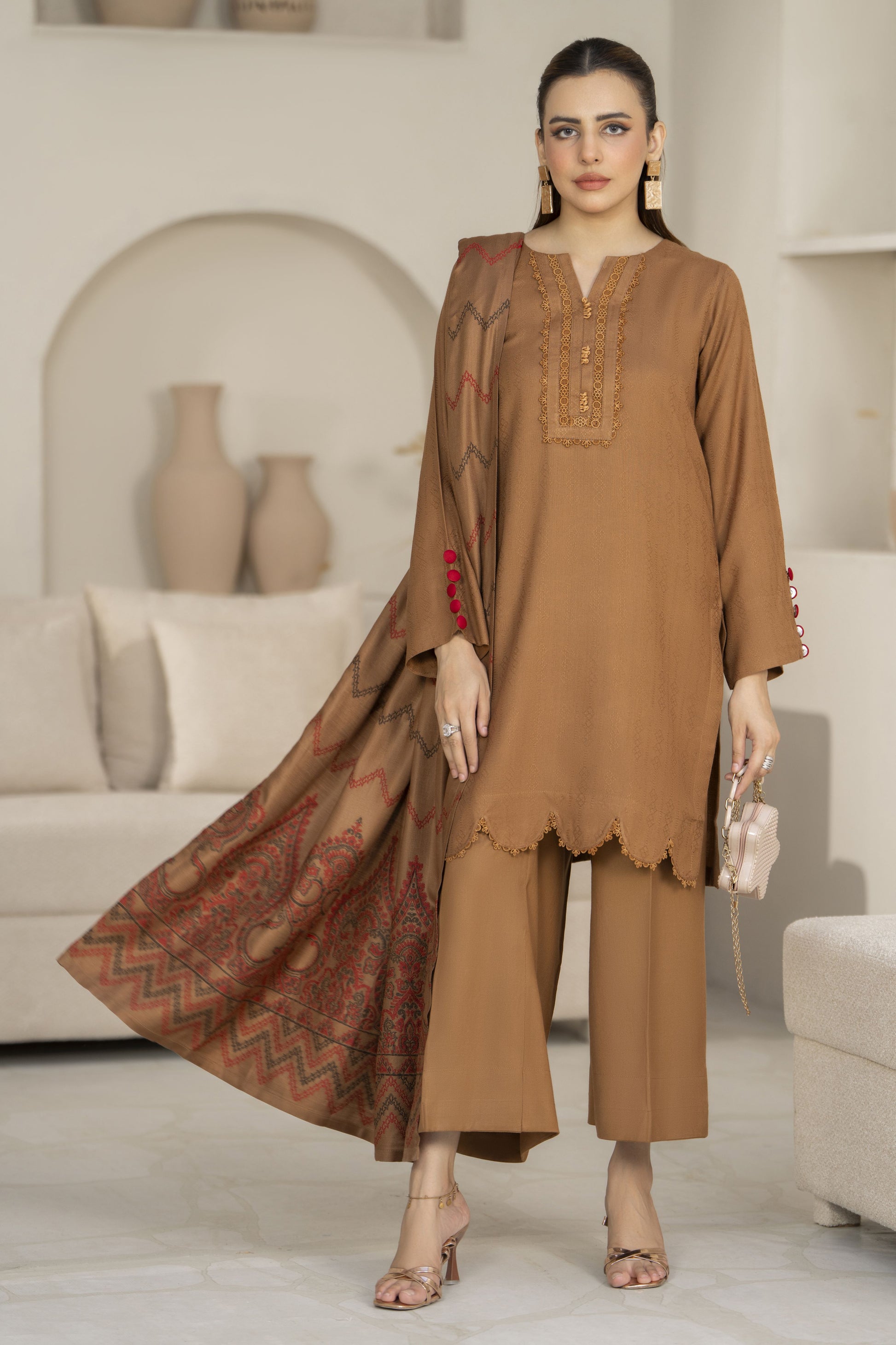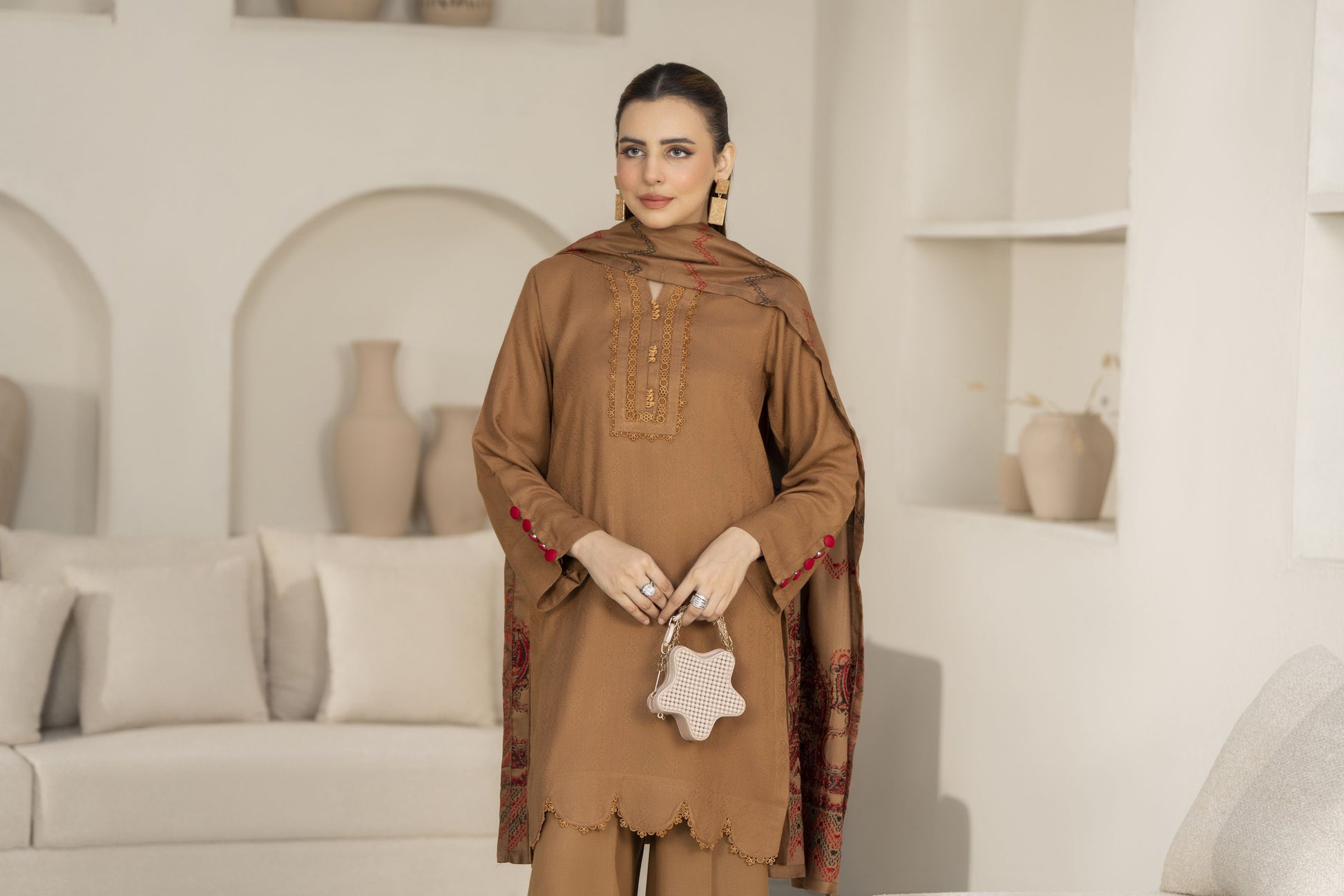 Caramel Pashmina Shawl Ready to Wear 3 Pcs Dress