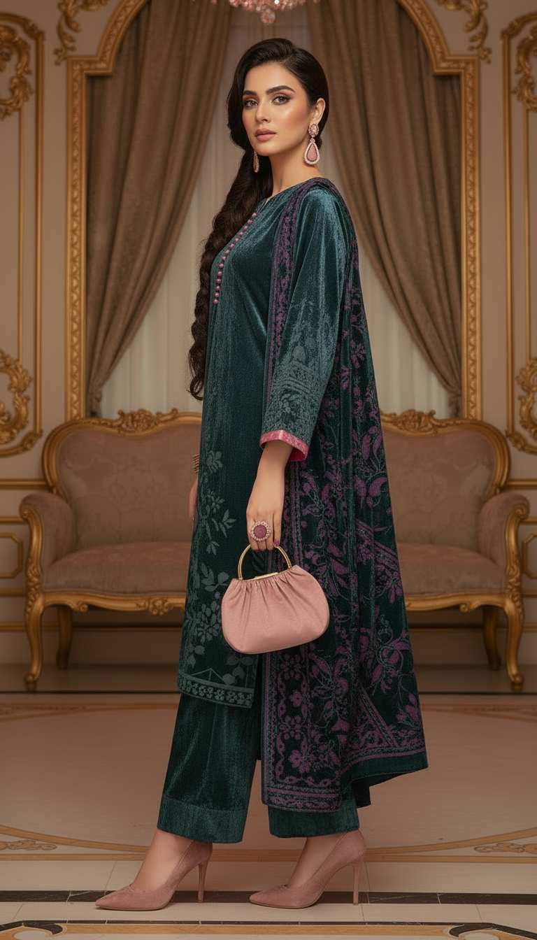 Dina French Velvet Grey Ready to Wear Dress with Palachi Shawl