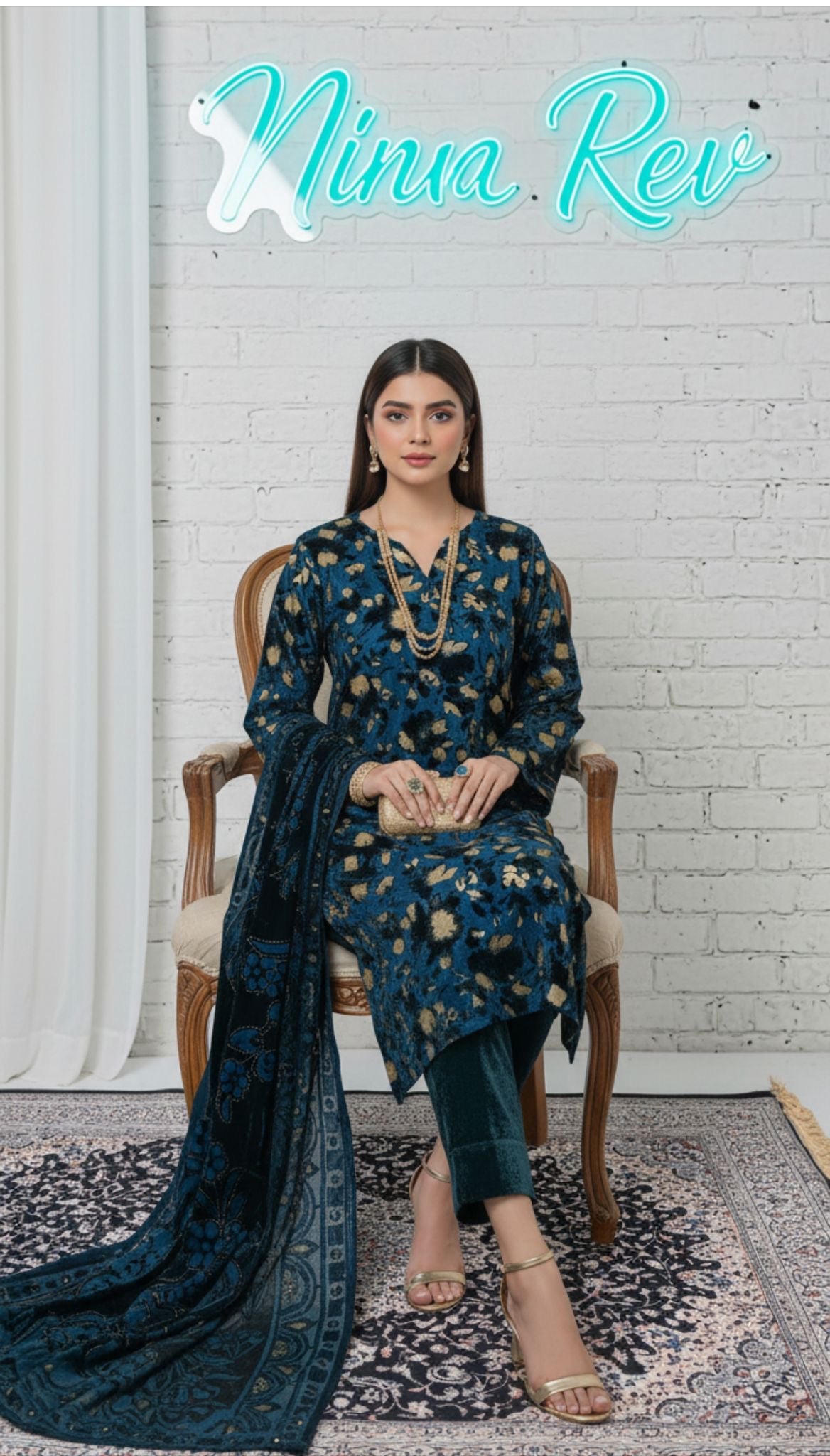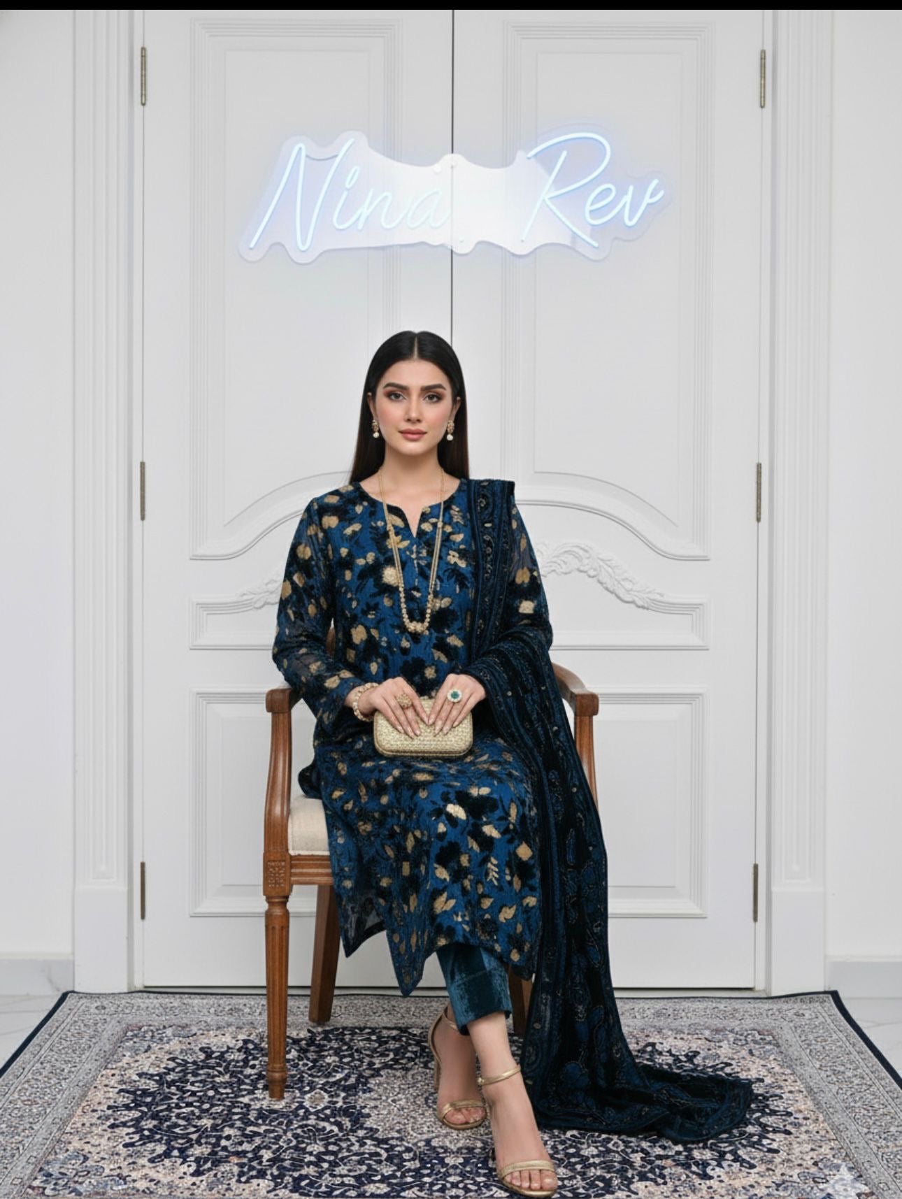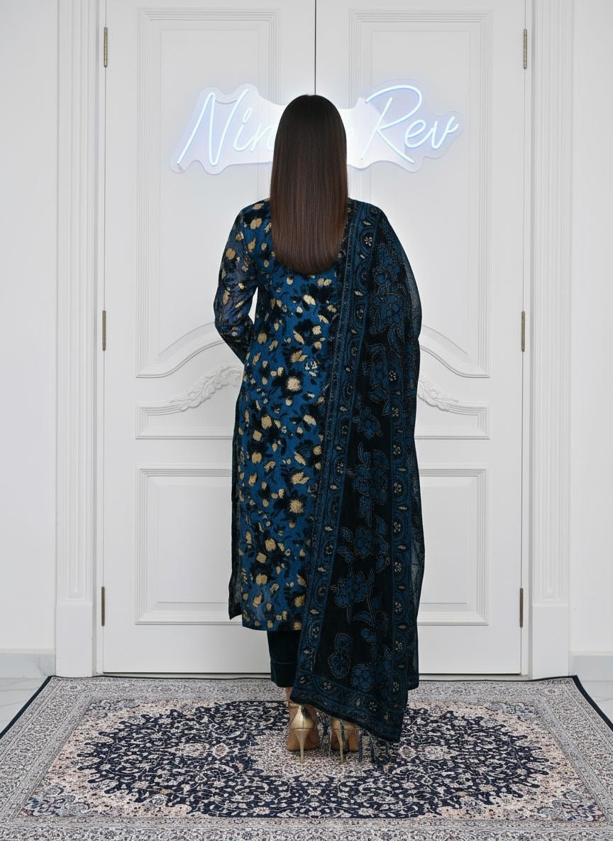 Full Teal Palachi Ready to Wear 3 Pcs Dress