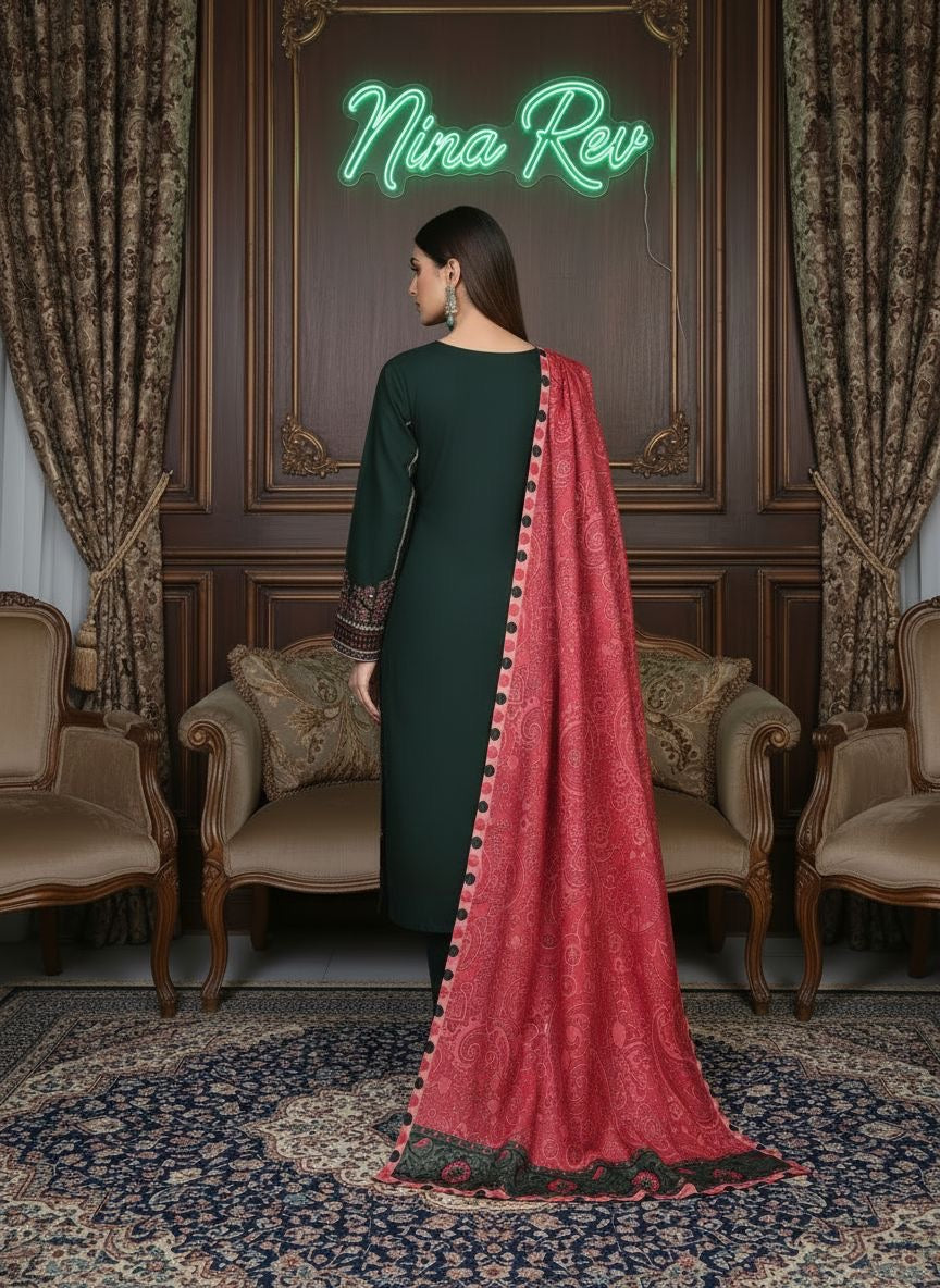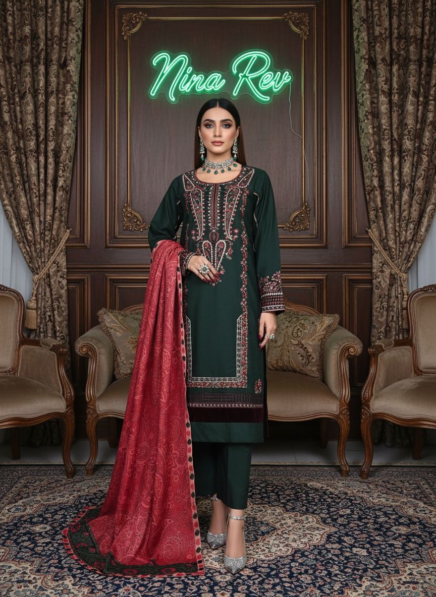 Green Classic Marina Ready to Wear 3 Pcs Embroidered Dress