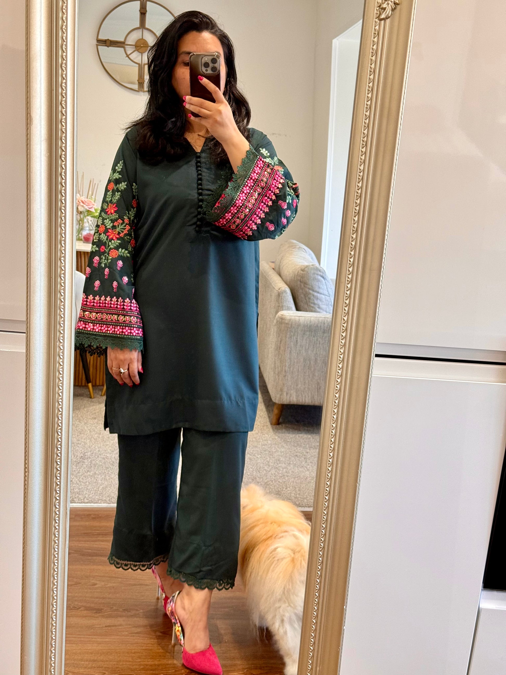 Green Forest Ready to Wear 2 Pcs Embroidered Dress