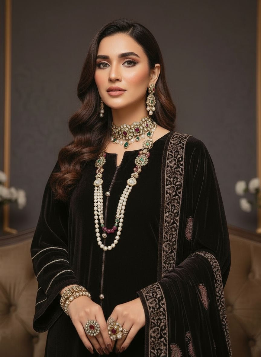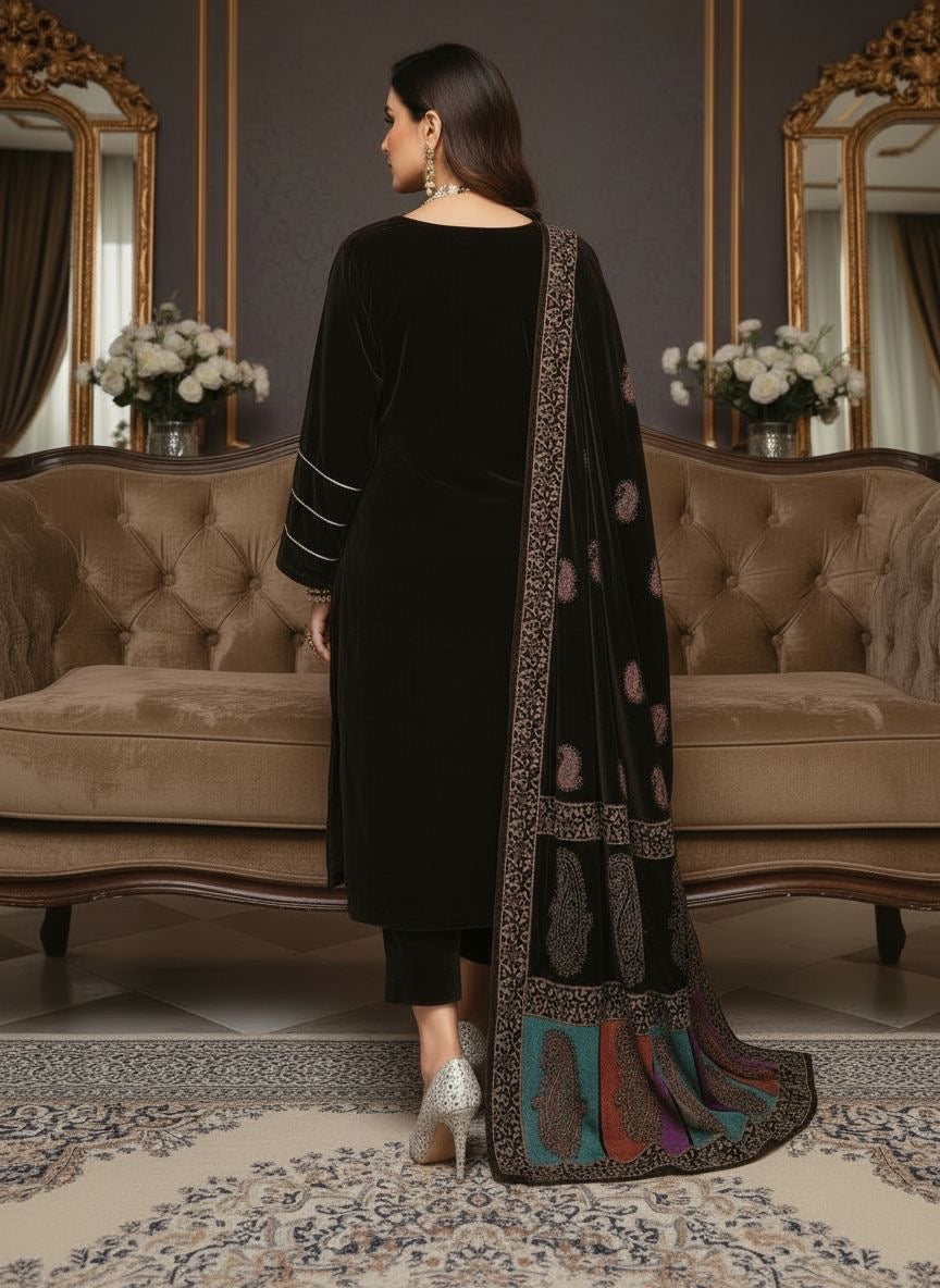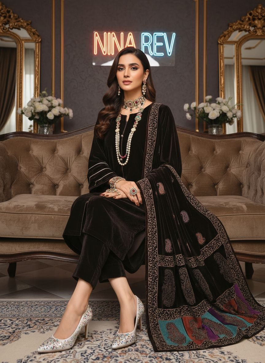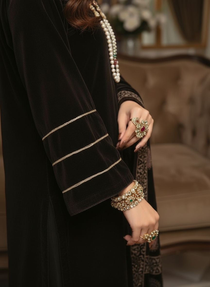 Raniyah Brown Velvet Ready to Wear 3 Pcs Dress