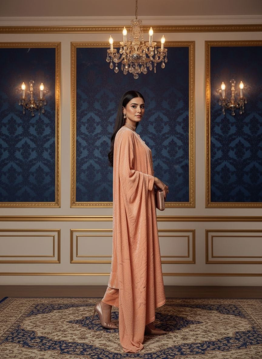 Rehar Peach French Velvet Ready to Wear 3 Pcs Dress