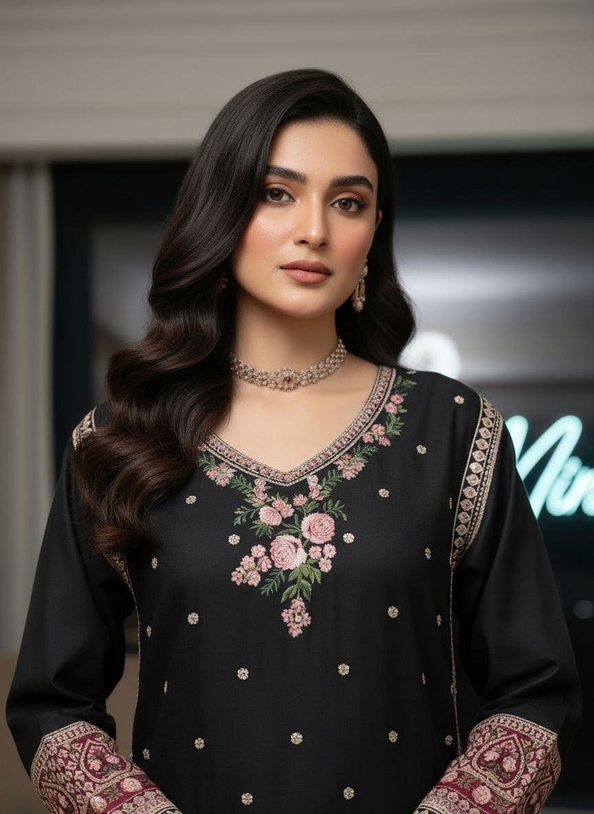 Savanah Ready to Wear Embroidered Kaftan Style 2 Pcs Viscose Dress